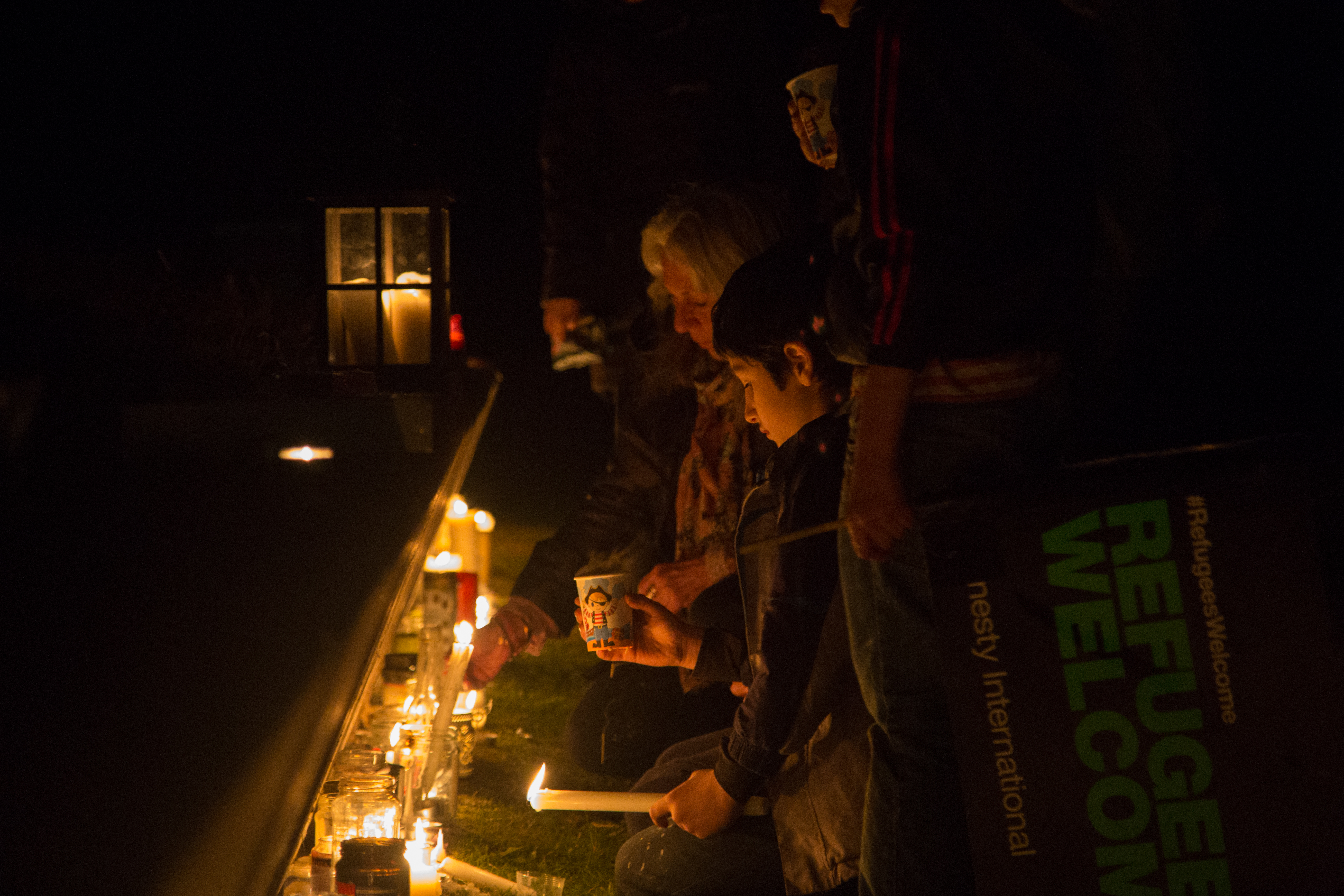 With the election of Jeremy Corbyn it’s apparently a new politics. It’s not so new here, but this encapsulates it. Two kids, one who I heard had been there for hours, assisting another child to light a candle in the dark, observed by someone recording events on a smartphone for social media. Solidarity, authenticity, citizen media and instant sharing. Brave New World.